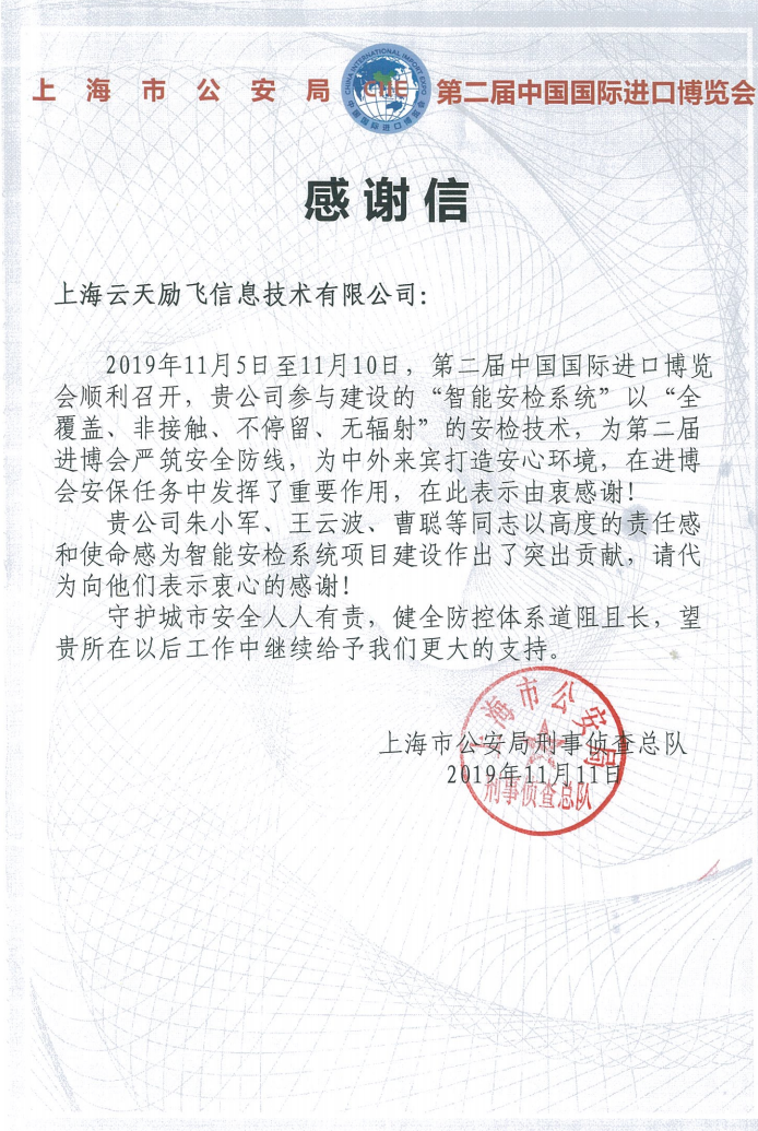 值得一提的是,自2018年首届进博会举办起,918.com(中国区)连续2年参与建设进博会“智能安检系统”项目,是进博会核心安保圈的动态人像识别技术提供厂商。